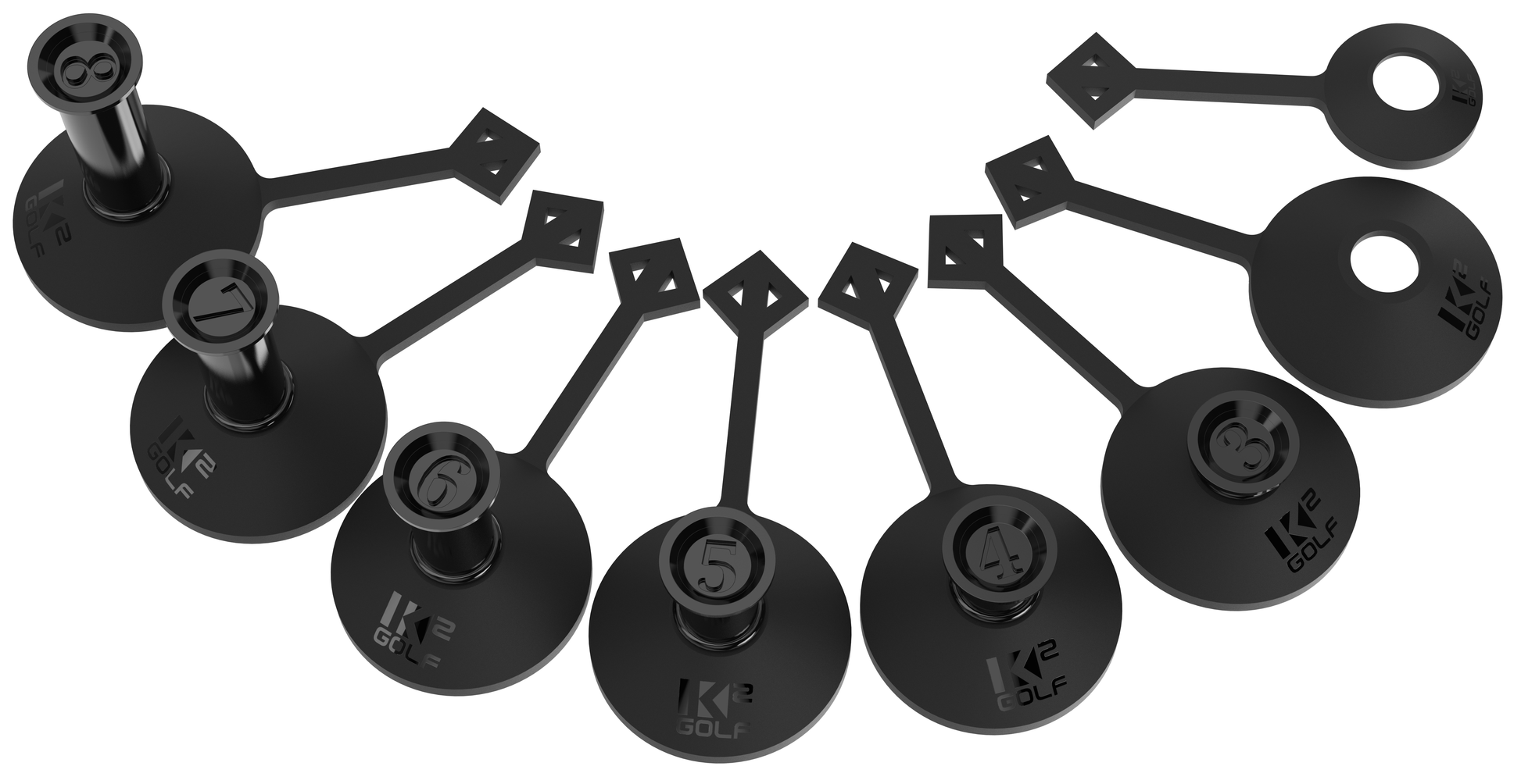 Includes our line of tee sizes typically used by most golfers. #1, #2, #3, #4, #5, #6, #7, #8. The last 6 tees are adjustable giving you ranges of heights from .25 in. up to 2.25 in. This pack is great to have options for your guests.